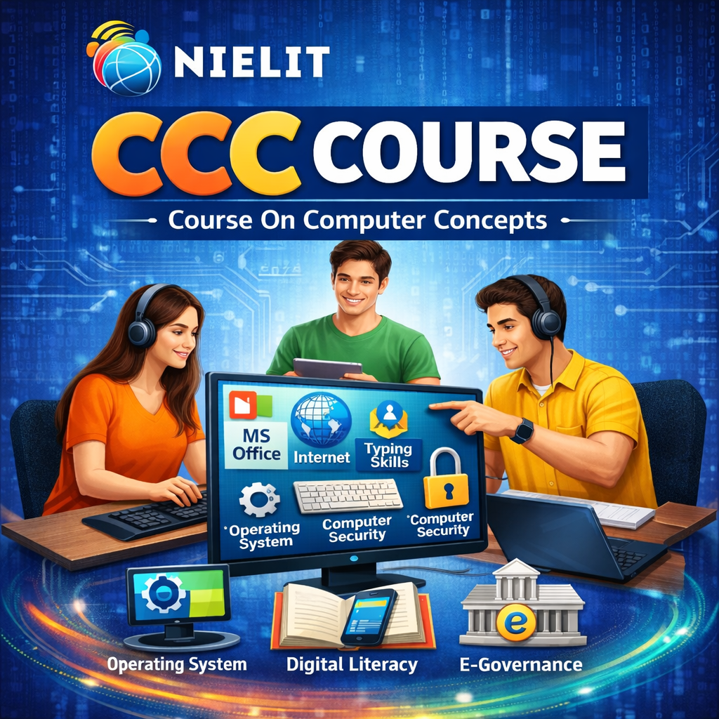 Course on Computer Concepts (CCC) is a basic computer literacy program designed to provide essential knowledge of computers and digital skills. It covers fundamentals such as computer hardware, software, operating systems, and file management. Students learn to use applications like MS Word, Excel, and PowerPoint, along with internet browsing, email usage, and online services. The course also introduces digital payment systems and cybersecurity basics. CCC is ideal for beginners, students, and job seekers who want to improve their computer proficiency. After completion, candidates can perform everyday digital tasks efficiently and enhance their employment opportunities in various sectors.